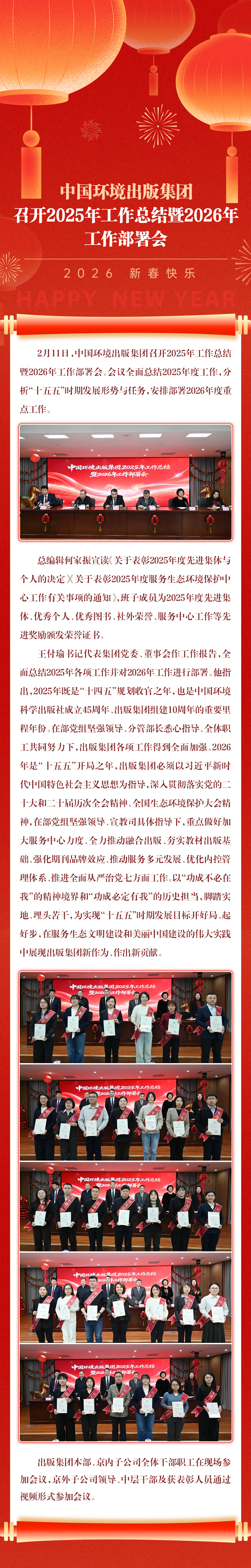 2月11日,中國環境出版集團召開2025年工作總結暨2026年工作部署會。